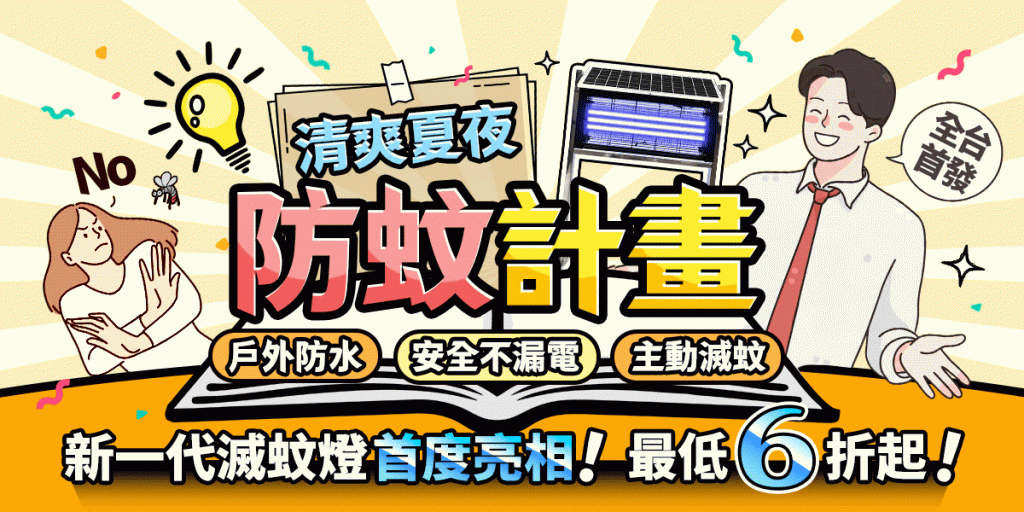 一般家用型滅蚊燈不僅無法碰水,放置在戶外還需另外接延長線,增加了電線走火的危險性,而太陽能戶外型的優點便是防水耐曬又防颱風,也因為無需額外接室電使用,完全解決了易走火之風險。