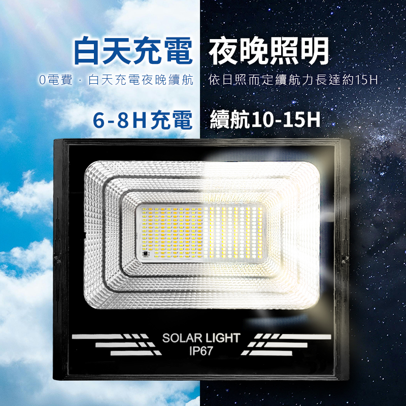 因此導入 1500W 等級太陽能投射燈 作為主要照明來源。