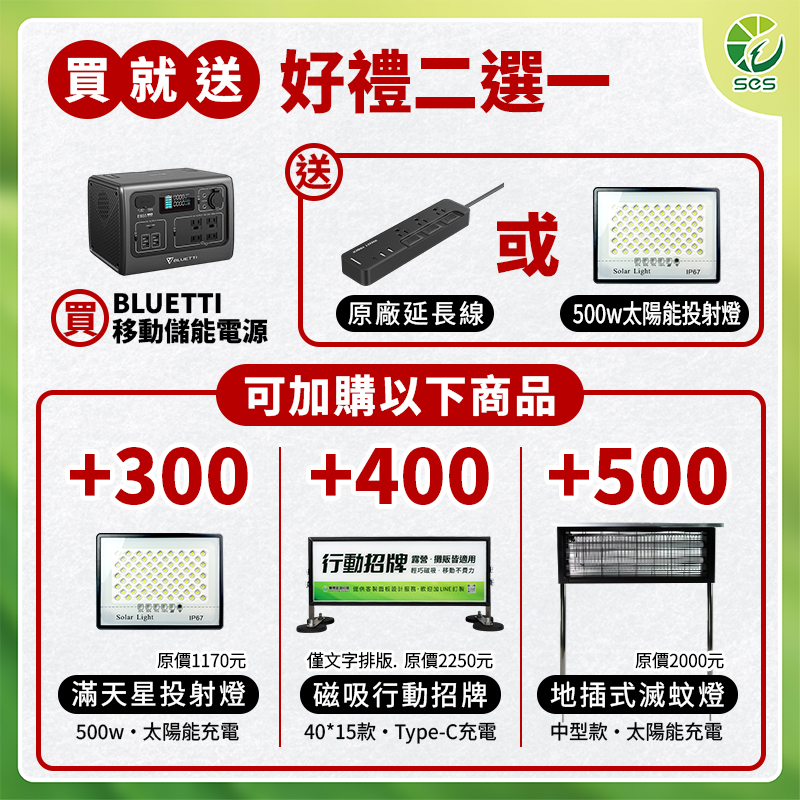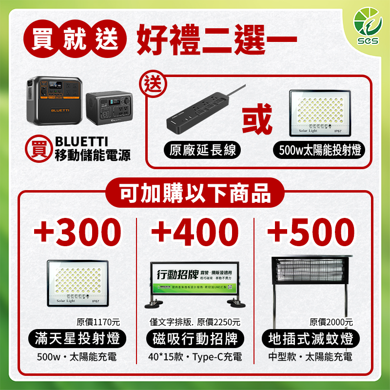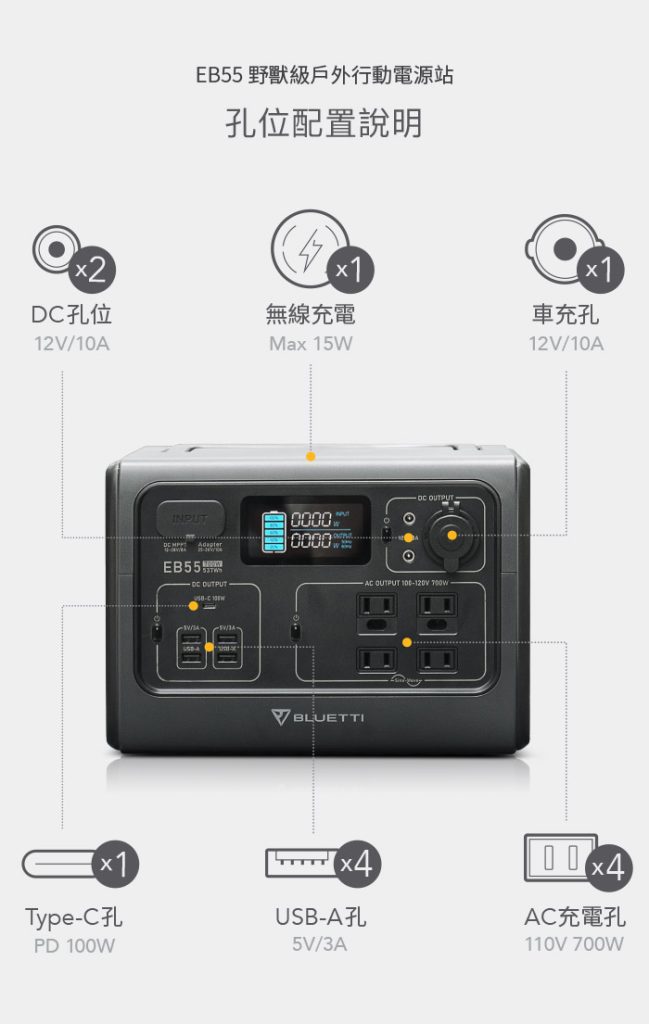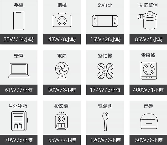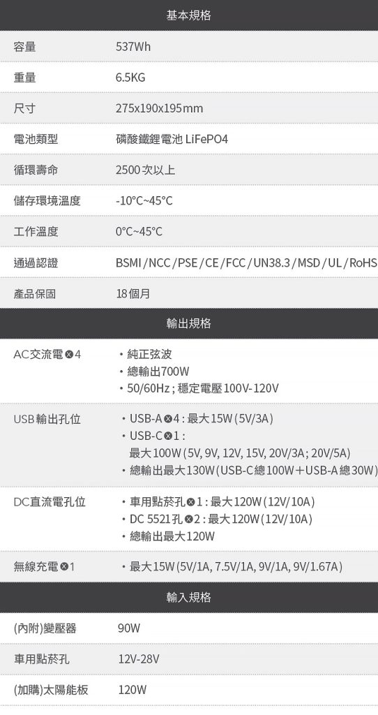 .使用(加購)太陽能板:120W (約5.5小時回充完畢)